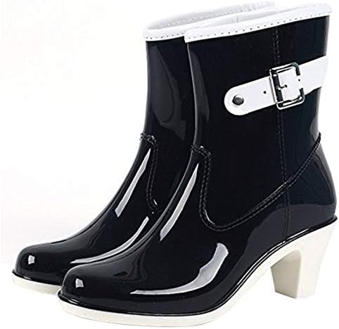 Amazon Masonanic レインブーツ レディース ショート ヒール6cm おしゃれ ミドル丈 レインシューズ 人気 雨靴 長靴 Masonanic ブーツ ブーティ