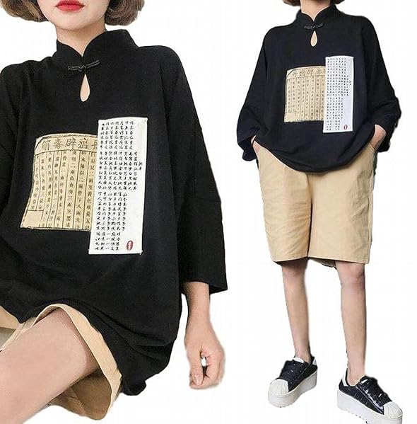 Amazon ステキファーム Ah40 チャイナシャツ レディース ストリート系 中華 韓国 原宿系 太極拳 服 中華服 黒 シャツ ブラウス 通販