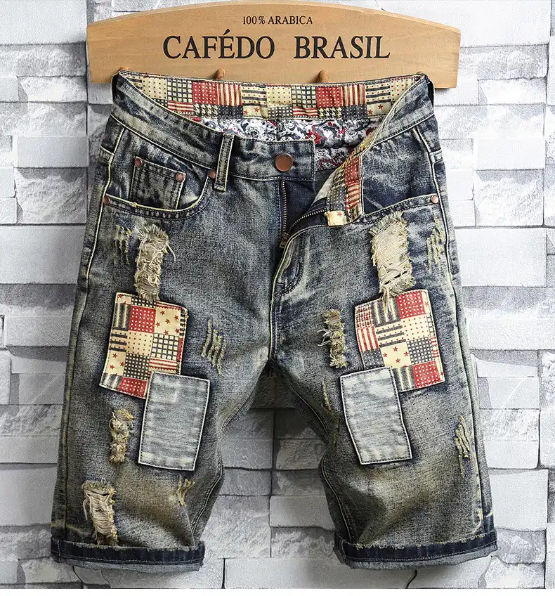 高品質男性穴ジーンズ夏デニムショーツ新ファッションメンズレトロカジュアルジーンズのショートパンツ男性ストレートデニムショーツ Aliexpress