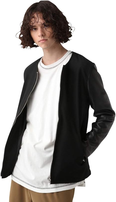 Amazon ハレ コート ノーカラー レザー ライダース メンズ 8077960904 L ブラック コート ジャケット 通販