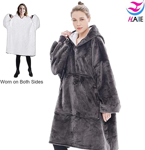 Amazon 大人ウェアラブルブランケットトレーナー特大パーカーレディースメンズソフトフリースは ラウンジソファー洗えるのための快適なぬいぐるみケープフード付きテレビを温めます グレー ブランケット 毛布 オンライン通販