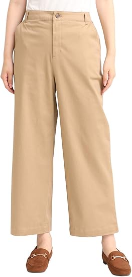 Amazon シンプルワイドレッグチノパンパンツポリエステル伸縮性なし レディース 通販
