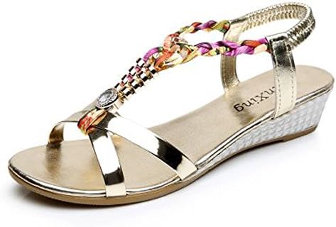 Lutents 出群 サンダル レディース アンクル ストラップ 編み込む キラキラ 韓国風 美脚 多色 ペタンコ 滑り止め 軽い 履きやすい 疲れない 大きいサイズ 母の日 女性用 オープントゥ ウェッジソール カジュアル やわらかい 軽量 ビーチサンダル