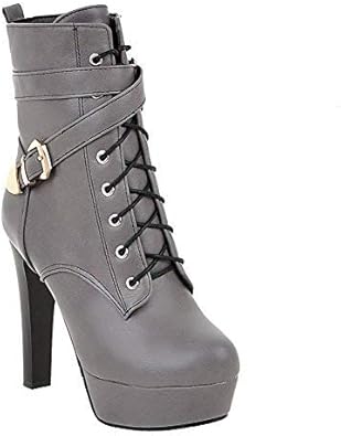 Amazon Charm Foot レディース ラウンドトゥ レースアップ ピンヒール ショートブーツ 12 0cm ヒール ブーツ ブーティ