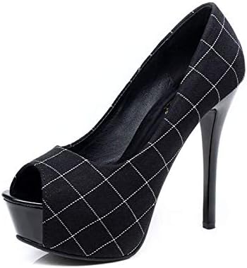 Amazon Flower Sea パンプス 厚底 Cosplay 超ハイヒール 12cm痛くない パーティーシューズ 結婚式 キャバクラ オフィス 靴 レディース 大人 美脚 チェク柄 Flower Sea パンプス