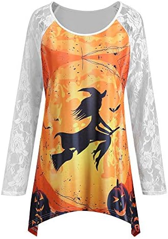 ハロウィン Tシャツ コスプレ 仮装 大人 レディース 長袖 かぼちゃ コウモリ 魔女 悪魔 ブラウス 洋装 洋服 レース 大きいサイズ 衣装 演劇 不規則な裾 ラッピング無料 ステージ 発表会 トップス 通勤 フォーマル プルオーバー Oネック お呼ばれ