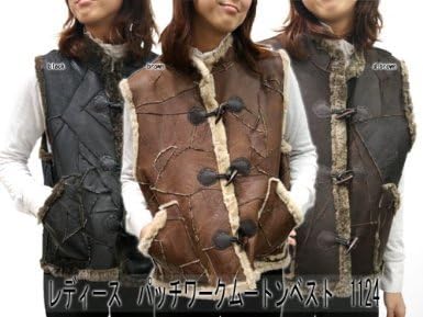 Amazon レザーベスト 革ベスト 皮ベスト レディース パッチワークムートンベスト1124 L ブラウン ベスト 通販