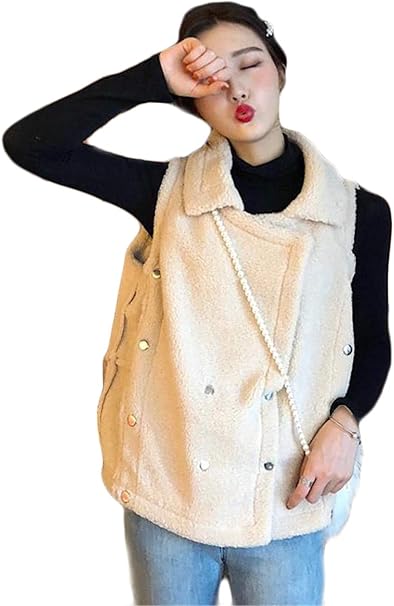 ンーセンー レディース ムートンベスト ショットコート 毛皮一体 ベスト ノースリーブ もふもふ 裏起毛 前開き 中綿ベスト スーツカラー ボタン付き シンプル ファッション フォーマル 通勤 ベスト 通販 Amazon