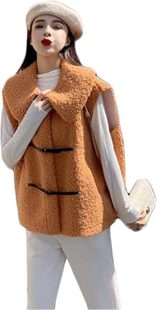 Amazon ジャンーウェ ムートンベスト ベスト レディース 無地 フェイクムートン 折り襟 チョッキ オシャレ アウター 人気 パーティー 通勤 通学 ベスト 通販