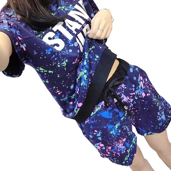 Amazon セットアップ セット 上下セット 半袖セットアップ レディース 部屋着 ルームウェア スポーティー カジュアル ショートパンツ ペイント パジャマ ルームウェアセット 通販
