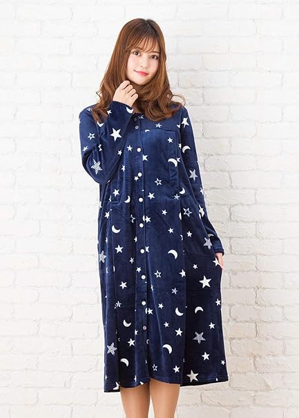 Amazon 前開きマタニティ ネグリジェ ストレッチベロア生地 秋冬 冬 冬春 長袖 マタニティ パジャマ 前開き 入院にも 授乳口付き 長袖 前開き ロング丈 レディース マタニティ ネグリジェ 紺 M ルームウェア パジャマ ベビー マタニティ 通販