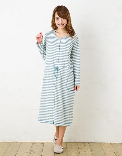 Amazon 前開きマタニティ ネグリジェ 天竺ボーダー 秋 秋冬 冬 長袖 マタニティ パジャマ 前開き 入院にも 授乳口付き 長袖 前開き ロング丈 レディース マタニティ ネグリジェ M サックス ルームウェア パジャマ ベビー マタニティ 通販
