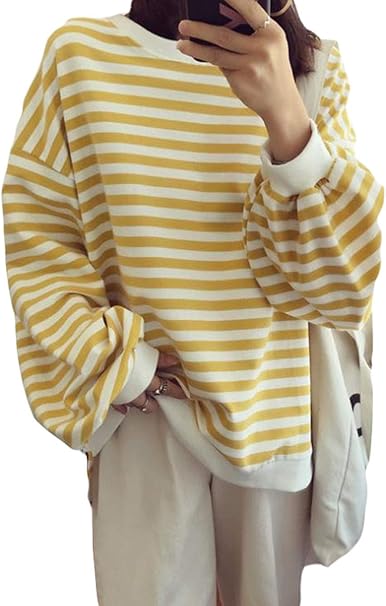 Bestmoodトレーナー レディース 長袖 カットソー ボーダー柄 ドルマンスリーブ 韓国ファッション プルオーバー トップス 着痩せ かわいい パーカー ロンt 秋物 ファッション トレーナー パーカー 通販 Amazon