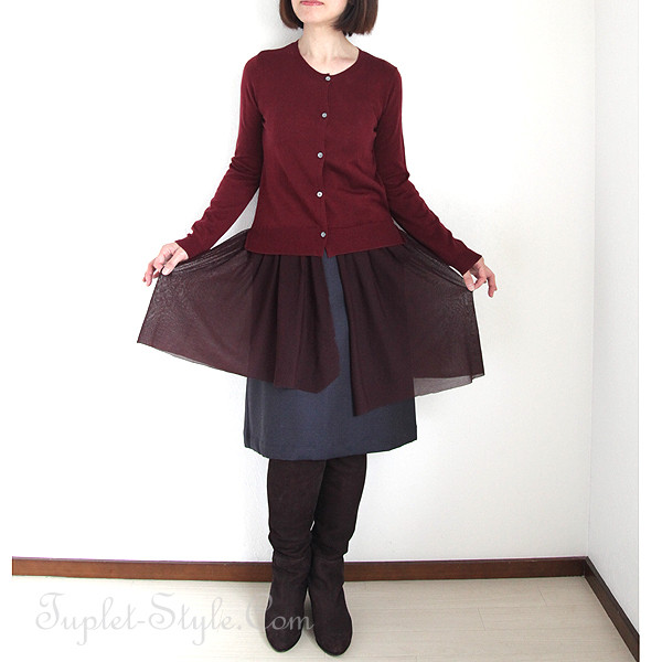 シックなボルドー色のスカートはネイビーとこっくりコーディネート タプレ ファッションブログ 40代 50代の洋服選び 毎日がお洒落曜日