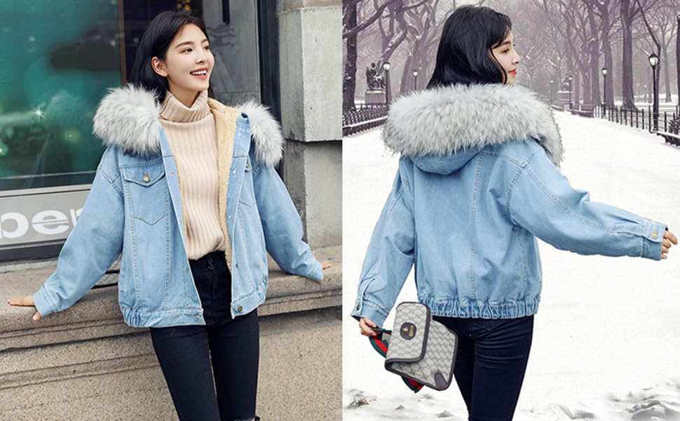 Amazon ボアデニムジャケット レディース 裏ボア ジージャン 厚手 防寒コート ボアパーカー デニムコート アウター ジージャン Gジャン フード付き ブルゾン裏起毛 ジーンズ Dy741 コート ジャケット 通販