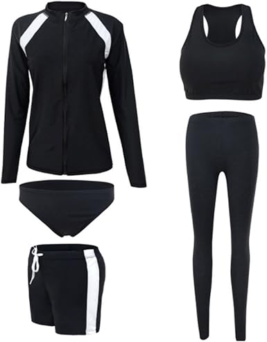Amazon Cozy Maker C M 水着 ダイビング 5点セット 長袖 レディース 体型カバー フィットネス 水泳 ビーチウェア ショートパンツ サーフィン フィットネス水着 スポーツウェア ラッシュガード おしゃれ かわいい セクシー ファッション 大きいサイズ タンキニ 通販