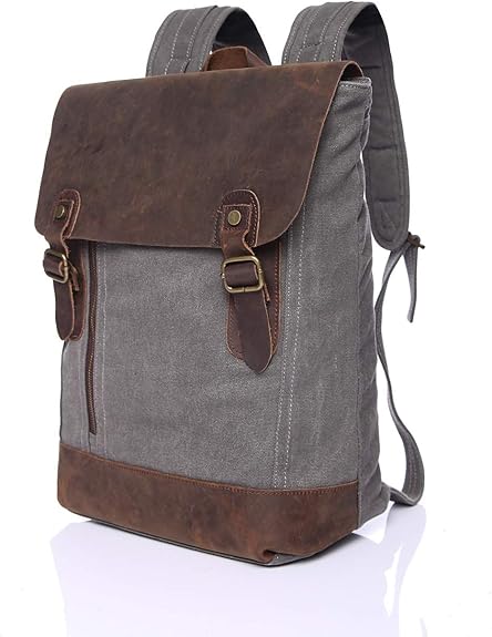 Amazon メンズバッグ リュックサック メンズバックパック キャンバス レトロ 学生バックパック ファッション 旅行 レジャー バックパック 大容量 多機能 レザーバッグ Color Gray Size M トートバッグ