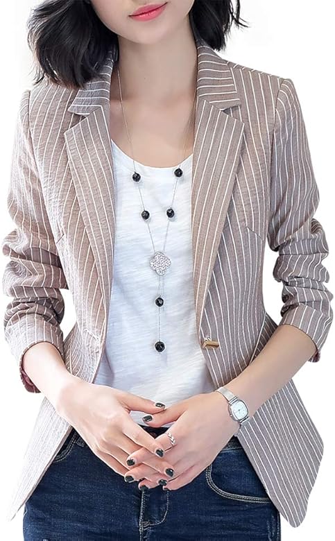 Amazon レディース スーツ ジャケット 七分袖 2色 vネックニット 縞柄 縞模様 トップス 春夏秋冬 一つボタン 制服 スリム スタイリッシュ ファッション カジュアル ビジネス S Xxxxl スーツジャケット コート ジャケット 通販