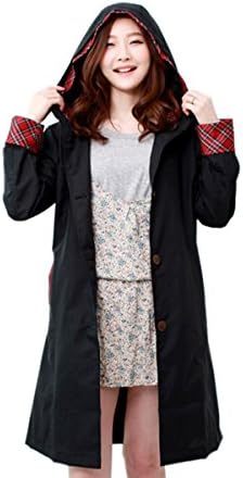 Pusaman レディースロングフード付きshowerproof軽量トレンチレインコート レディースレインコート Color L 未使用品 Size Navy