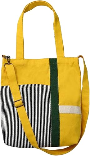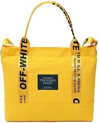 Amazon Fivelovetwoレディースメンズ英字プリント個性キャンバストートバッグ2way ハンドバッグ 帆布 カバンカジュアル男女兼用大容量斜め掛け肩掛けショルダー バッグイエロー トートバッグ