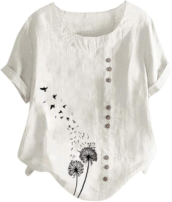 Amazon Tシャツ レディース Kukoyo 夏服 ブラウス シャツ 半袖 大きいサイズ ゆったり カジュアル 漫画 アニマル プリント プルオーバー トップス ボタン付き カットソー お洒落 可愛い パーカー 体型カバー 通勤 通学 日常 洋服 柔らかい 春夏秋 シャツ ブラウス 通販