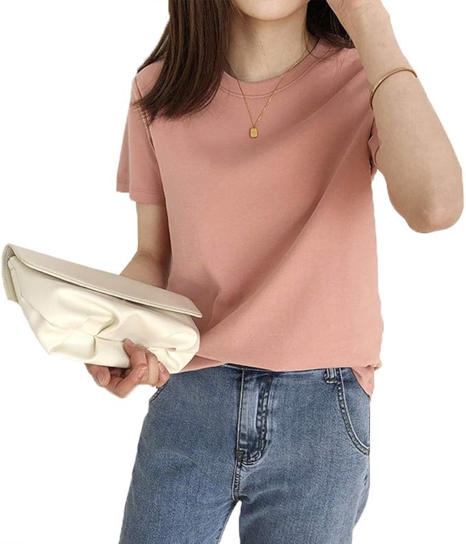 Amazon Youha Tシャツ レディース 半袖 トップス カットソー 夏服 カジュアル 無地 ベーシック ラウンドネック ゆったり Tシャツ カットソー 通販