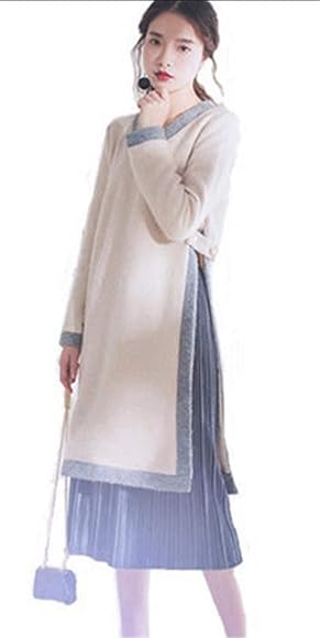 Amazon サ二ー レディース 二点セット スーツ 秋冬 ニット Vネック スリット インナー 膝丈 セーター 4l ショート丈 ワンピース 大きいサイズ 写真通り M ワンピーススーツ 通販