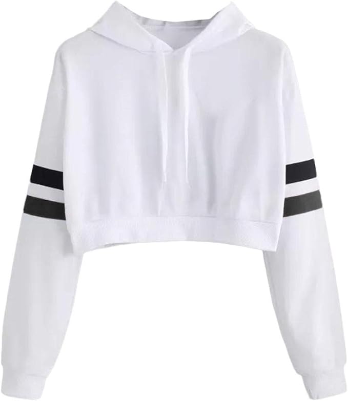 Amazon パーカー レディース E Bears 長袖 フード付き ストライプ ショート丈 ラッシュガード トレーナー Tシャツ トップス ブラウス アウトドア 春 秋 少女 学生 Bf風 韓国風 かっこういい ファッション シンプル 通学 スポーツ ダンス ホワイト トレーナー