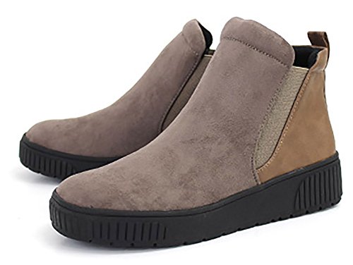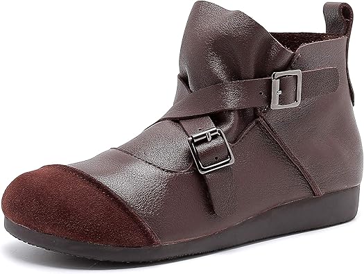 Amazon Maysky ショートブーツ 切り替え クロスベルト ぺたんこ ローヒール スリッポン ラウンドトゥ 幅広 茶 黒色 ハイカット レザー カジュアル レディース ブーツ ブーティ