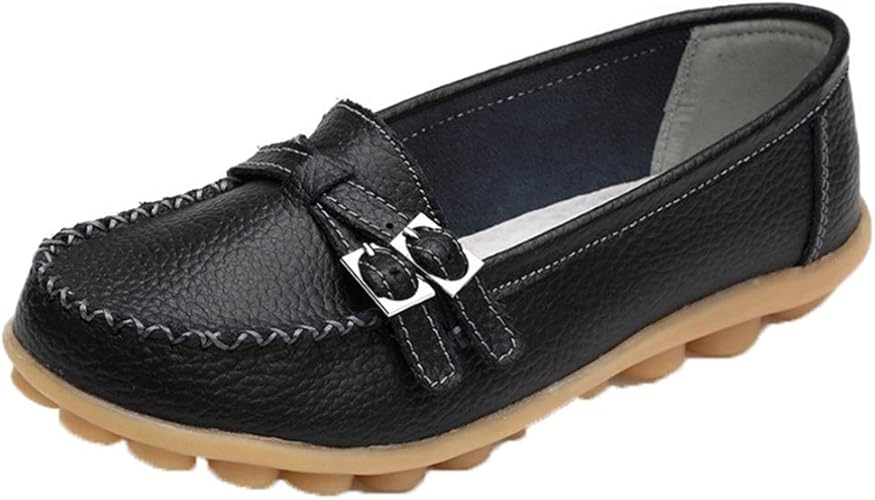 Amazon モカシンシューズ 婦人靴 レディース靴 大きいサイズ ラウンドトゥ 幅広 外反母趾 ローファー スリッポン ベルト ぺたんこ 痛くない 疲れにくい 歩きやすい フラットシューズ Pu カジュアルシューズ コンフォート モカシン モカシン