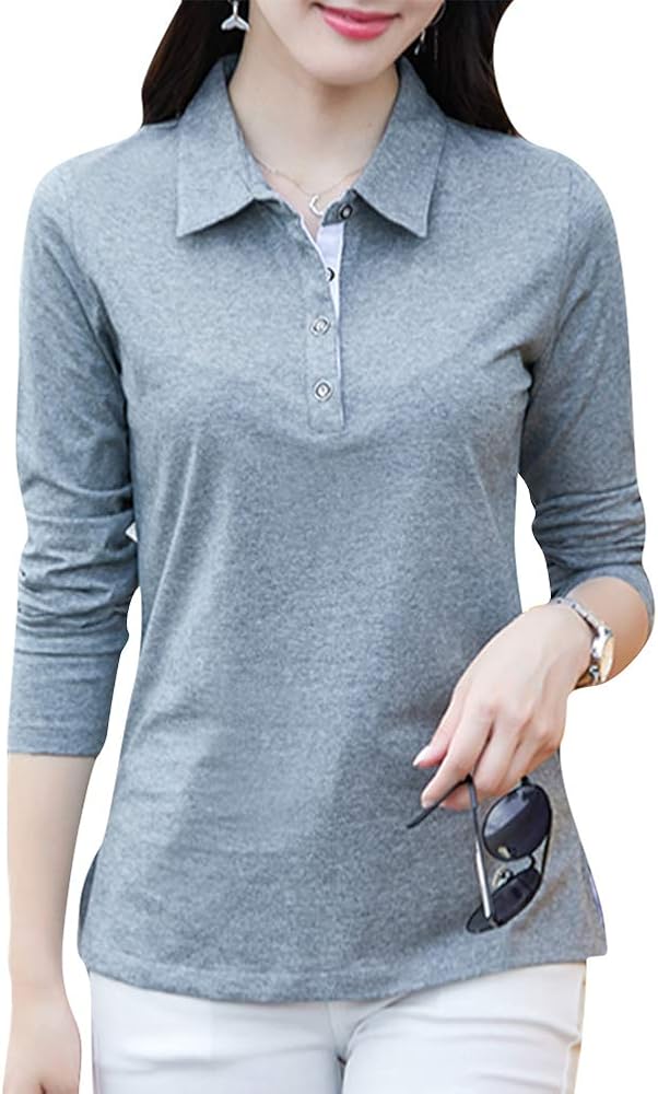 Amazon Asherangel ポロシャツ レディース 長袖 半袖 シャツ トップス カジュアル ファッション スポーツ 春夏秋冬 無地 綿 ボタン ポロシャツ 通販