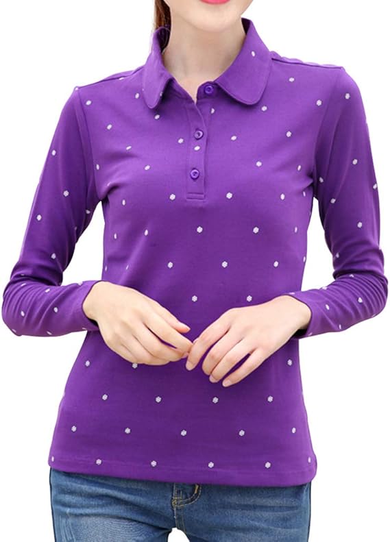 Amazon Kukaki クカキ ポロシャツ レディース 長袖 無地 スリム タイト かわいい ゴルフシャツ 綿 雪柄 プリント 開襟 バトミントン テニス ポロ スポーツ シャツ 細身 ストレッチ 秋 冬 春 M 4xl ポロシャツ 通販