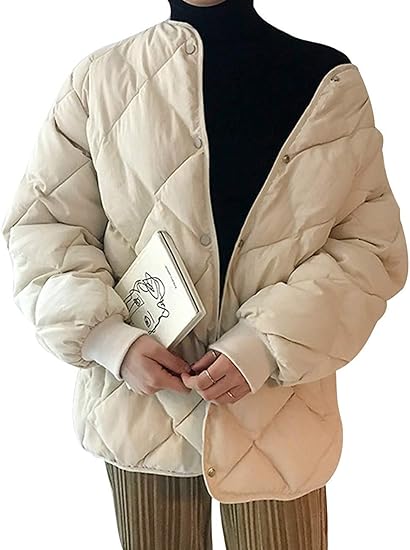 Amazon Lucky Lemon ジャケット コート レディース キルティングジャケット ダウンジャケット 中綿ジャケット キルティングアウター ライトアウター 防寒 ノーカラー 体型カバー 大きめ カジュアル 韓国ファッション ベージュ フリーサイズ コート ジャケット 通販