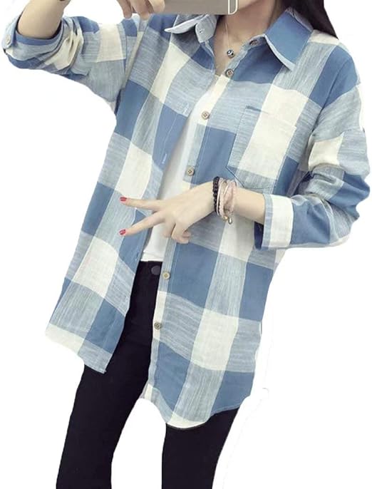 Amazon チェックシャツ レディース ギンガムチェック 細身 トップス シャツ チェック柄 柔軟 定型 長袖 春秋冬 シャツ ブラウス 通販
