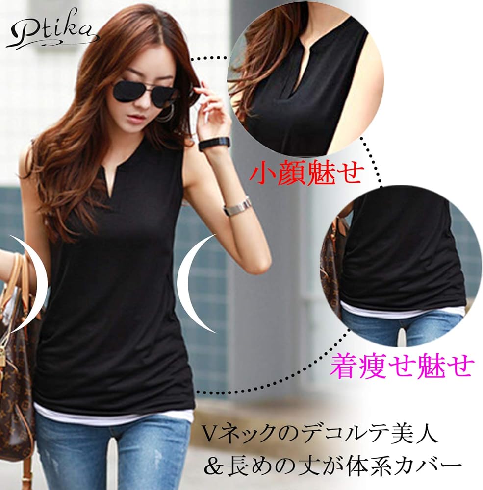 Amazon Ptika ノースリーブ Vネック レディース トップス Tシャツ 洗濯ネット付き Tシャツ カットソー 通販