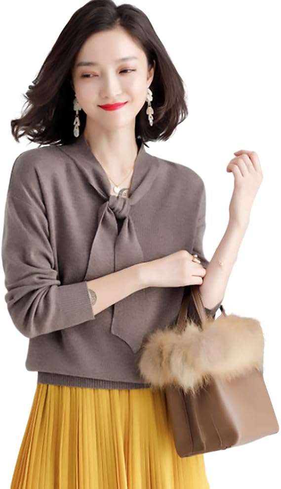 Amazon Exlura セーター レディース カットソー 秋冬 ファッション カシミヤタッチ セーター 洗濯機利用可能 リボン 長袖 無地 薄手 灰 L セーター 通販