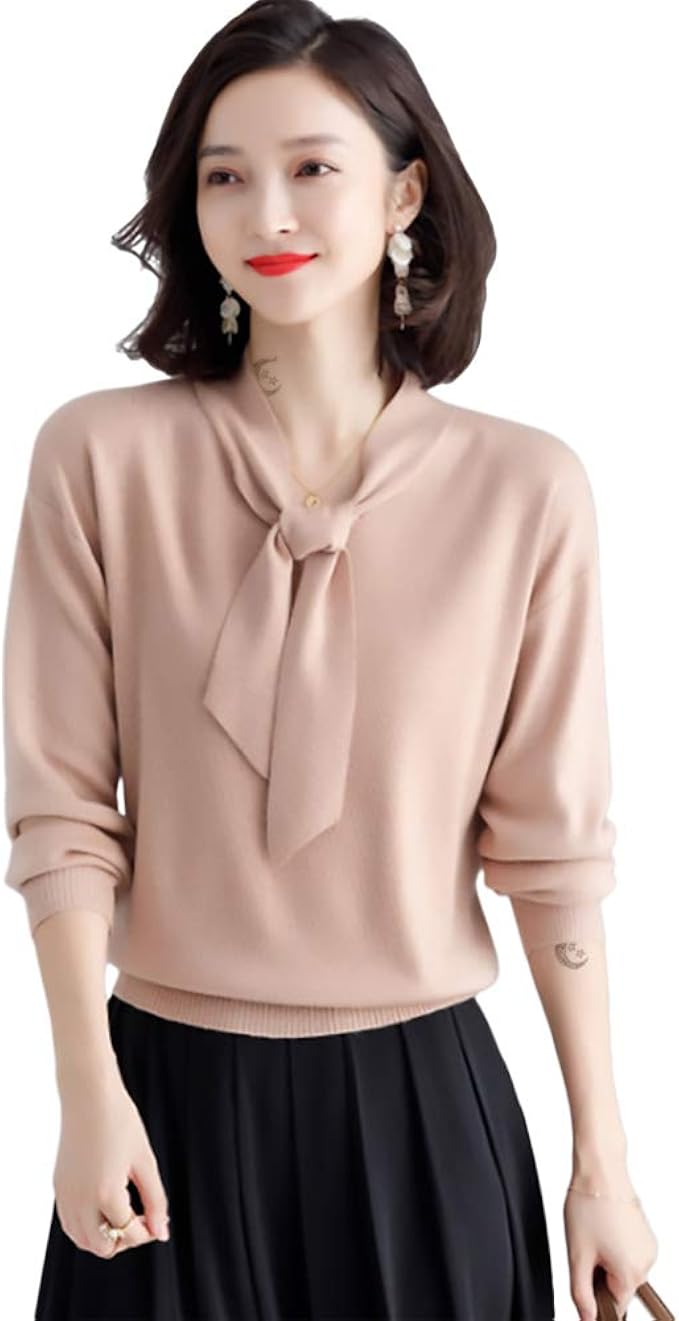 Amazon Exlura セーター レディース カットソー 秋冬 ファッション カシミヤタッチ セーター 洗濯機利用可能 リボン 長袖 無地 薄手 大人ピンク S セーター 通販