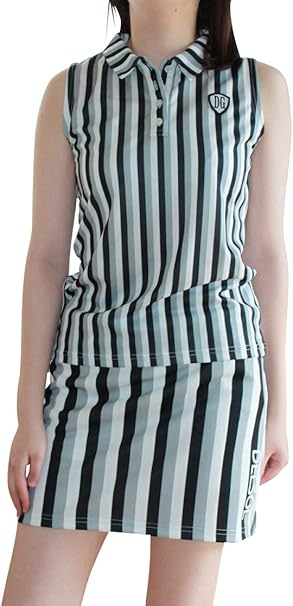 Amazon 7574 Bk L ストライプ柄ノースリーブセットアップ スカート セットアップ ストライプ 白黒 L 大きいサイズ デルソル ゴルフ ゴルフウェア レディース スカート 通販