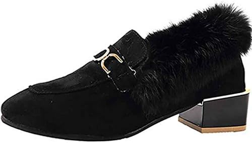 ファー ローファー スリッポン パンプス レディース チャンキーヒール 5cmヒール 柔らかい 美脚 手数料無料 ふわふわ スクエアトゥ ビット付き 痛くない きれい バブーシュ 歩きやすい おしゃれ 低反発 春秋冬