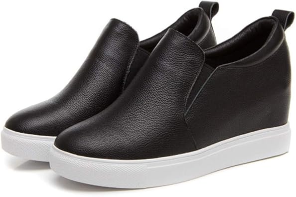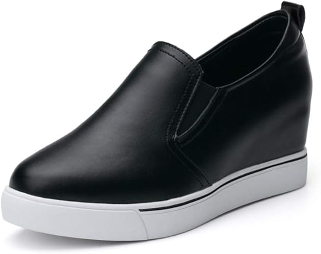 Amazon Klian インヒール スリッポン ヒール レディース インヒールスニーカー 7cm スニーカー 小さいサイズ スリッポンヒール 靴 厚底 ラウンドトゥ 黒 フラットシューズ シークレットシューズ ウェッジソール ウエッジ 7cm Klian ローファー スリッポン