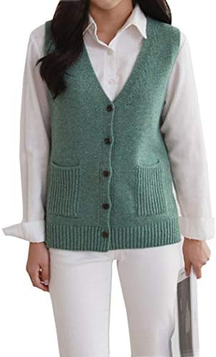 Minana ニット ベスト レディース 前開き ジレ レトロ ニットベスト ポケット付き 女性用 ニットトップス ノースリーブ アウター 可愛い