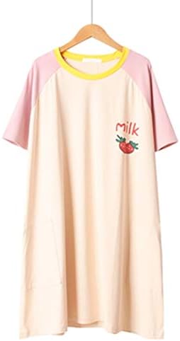 Amazon コニー レディース ルームウェア ワンピース パジャマ 夏 半袖 コットン 無地 ふんわり 涼しい 吸汗 通気 寝巻き 大きいサイズ ルームワンピース ネグリジェ 通販