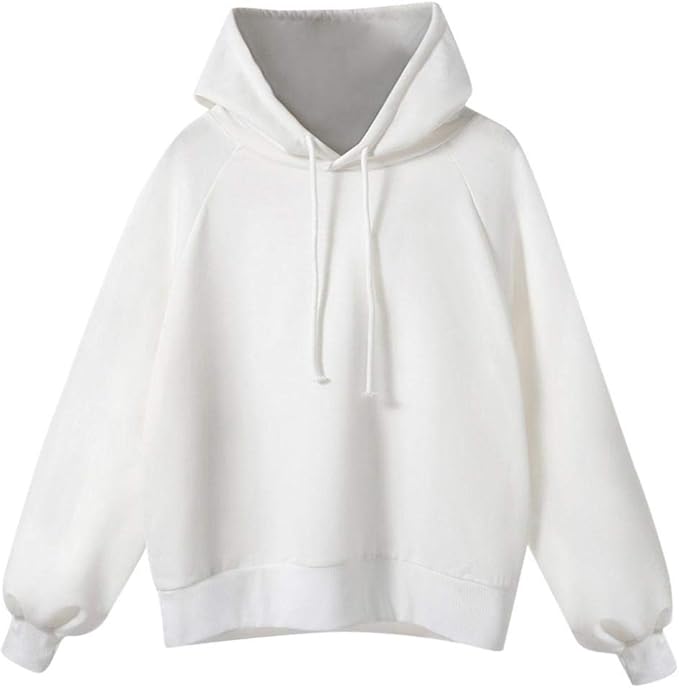 Amazon Aliciga トレーナー レディース 長袖 フード付き Bf風 無地 オーバーサイズ プルオーバー ヒップホップ スポーツ ダンス衣装 韓国 パーカー カジュアル スウェット 快適 彼氏 ゆったり 学生 大きいサイズ L ホワイト トレーナー パーカー 通販