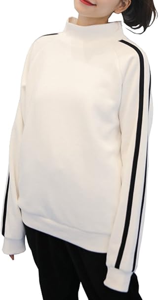 Amazon Davely 裏起毛 トレーナー レディース ロゴ スウェット ハイネック プルオーバー トップス カジュアル 楽チン 秋 冬 M 白 トレーナー パーカー 通販