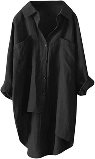 Amazon Hodarey シャツ レディース 長袖 リネンシャツ シャツワンピース ブラウス 秋服 トップス ゆったり春 秋 綿麻 カジュアル 大きいサイズ 無地 大人 シャツ レディース リネンシャツ 棉麻 ロング丈 ブラウス おしゃれ 長袖 ファッション オフィス シャツ