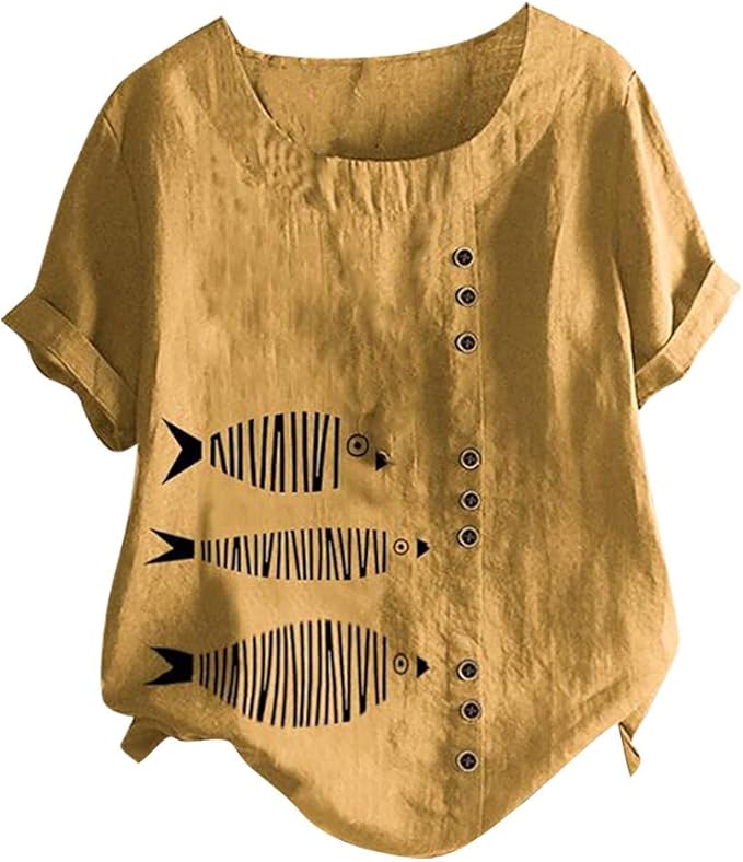Amazon Tシャツ レディース リネンシャツ カットソー 夏服 半袖 綿麻 ボタンダウン ゆったり きれいめ ブラウス 民族風 おしゃれ カジュアル トップス 春 夏 秋 大きいサイズ 体型カバ 薄手 女性 人気 上着 部屋着 通学 通勤 お出かけ Tシャツ カットソー