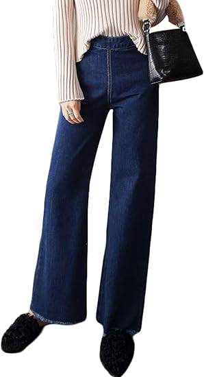 Amazon Zhongjue ジュージェン ワイドパンツ レディース 春 秋 デニム パンタロン ゆったり ハイウエスト 高見え ジーンズ フェミニン デニム スラックス ブルー デニム パンツ 大きいサイズ ジーンズ 通販