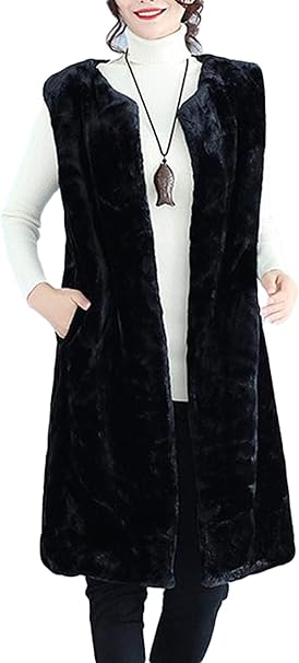 Amazon Gergeousレディース ロング ベスト ボアベスト 黒 ファーコート ノースリーブ 冬物 あったか 防寒 ロングコート Freesize黒 ベスト 通販