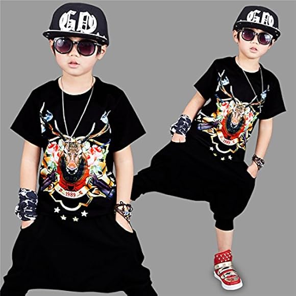Amazon Co Jp マリア Mariah ヒップホップ キッズ ダンスウェア 男の子 2点セット 半袖 演出服 上下セット ストリート系 ズボン Tシャツ ジャズ ボーイズ カジュアル 高品質ダンス衣装 服 ファッション小物