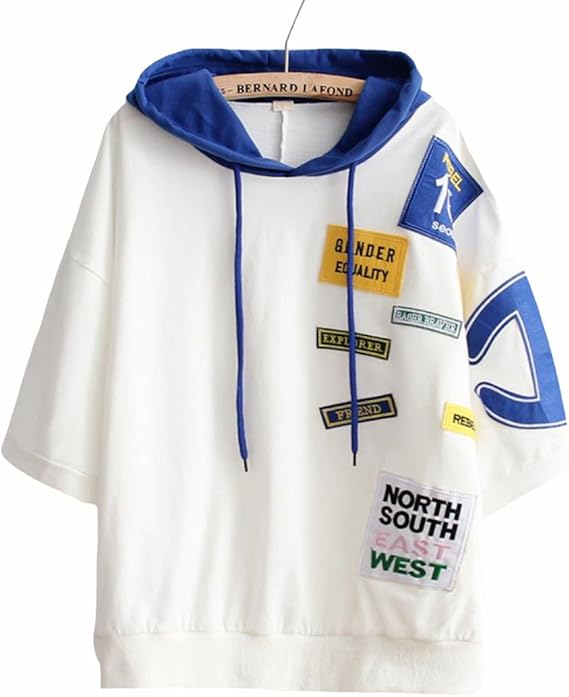 Amazon ドチィン Daocheng レディース 夏 薄手 半袖 パーカー 無地 シンプル ゆったり 白 Tシャツ フード付き おしゃれ Bf風 可愛い ファッション 通学 ブルー トレーナー パーカー 通販